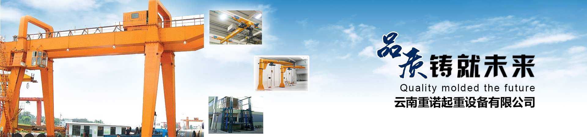 云南重諾起重設備有限公司主要經營銷售:橋式起重機、門式起重機、懸掛起重機、旋臂起重機、電動葫蘆、升降貨梯、電動平車、液壓升降平臺、升降搬運設備、起重配套工具、起重軸承、起重機各部位配件。公司產品暢銷全國各地,深受用戶的信賴?! 」就ㄟ^了ISO9001 :2000質量體系認證具備320T及以下噸位橋式起重機、280T及以下噸位門式起重機特種設備制造許可證.320T及以下起重機的特種設備安裝......更多>>